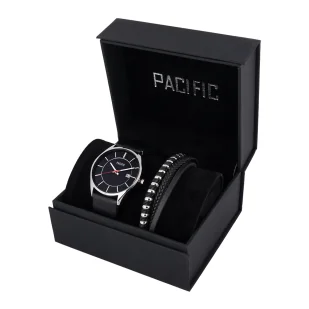 Zegarek Pacific X0037-07 komplet srebrny zegarek + bransoletka elegancki zestaw dla mężczyzn