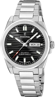 Model męski F20073-5 z rodziny Festina Swiss Made marki Festina. Nieschematyczny wygląd czasomierza uzyskano także dzięki tarczy w kolorze czarnym. Zegarek ten prezentuje godzinę w formacie analogowym dzięki czemu odczyt jest intuicyjny. Koperta jest w kolorze srebrnym szeroka jest na 39 mm oraz ma grubość 11 mm - w kształcie okrągłym. Festina tej marki chyba nie ma konieczności specjalnie przedstawiać.