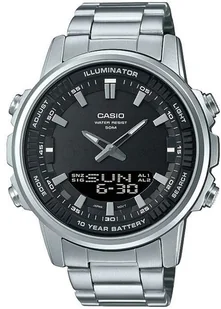Męski zegarek Casio AMW-880D-1AV to zegarek, który dzięki swemu wzornictwu zawsze będzie prezentował się dobrze. Charakteru dodaje wysokiej klasy tarcza w kolorze czarnym. Aktualna godzina pokazywana jest w sposób analogowo - cyfrowy co niezmiernie łatwo pozwala ją odczytać. Koperta została ozdobiona kolorem srebrnym szeroka jest na 51. 9 mm oraz ma grubość 51.