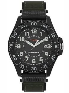 Męski zegarek TIMEX Expedition Acadia Rugged TW4B26400 pasuje idealnie do codziennych stylizacji, jak i na bardziej uroczyste okazje. Na czarnej i czytelnej tarczy umieszczono datownik. Model ten posiada czarno-zielony materiałowy pasek oraz czarną kopertę wykonaną z wysokiej jakości stali szlachetnej. Klasa wodoszczelności zegarka to WR100. Podświetlenie tarczy INDIGLO - Specjalny patent na podświetlenie tarczy. Po wciśnięciu koronki lub przycisku funkcyjnego tarcza zegarka zostanie podświetlona od spodu.