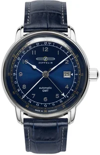 Wszystkie czasomierze montowane są w Niemczech, wykorzystując trwałe materiały takich jaki stal szlachetna, skóra naturalna oraz sprawdzone mechanizmy szwajcarskie i japońskie - jest to prawdziwa niezawodność i długowieczność czasomierza. Zegarki Zeppelin urzekają sumienną budową, troską o szczegóły i standardowym stylem retro natchnionym lotnictwem, będąc idealnym wyborem dla każdego kto docenia szczegółowość oraz wysoką jakość wykonania Model 7668-3 nakręca się za pośrednictwem ruchów ręki dzięki wysokiej klasy mechanizmowi automatycznemu. Pasek niebieskiego koloru zrobiony jest z wysokiej klasy skóry zapewniającej trwałość i wygodę użytkowania. Koperta została zrobiona ze stali nierdzewnej zapewniającej wysoką jakość i trwałość w tym odporność na korozję oraz działanie czynników atmosferycznych. Szybki i dokładny odczyt godziny uzyskano poprzez dodanie cyfr umieszonych na tarczy zegarka.