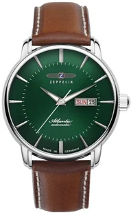 Zegarek męski 8466-4 marki Zeppelin to dobra propozycja dla osób ceniących sobie dbałość o szczegóły oraz bezproblemowe działanie mechanizmów. Wysokiej trwałości tarczę zegarka ozdobiono zielonym kolorem. Zaprezentowana metodą analogową bieżąca godzina jest czytelna i łatwa do odczytania. Koperta została pokryta kolorem srebrnym szeroka jest na 40 mm oraz ma grubość 13 mm - charakteryzuje się okrągłym kształtem. Zeppelin to marka zegarków wyróżniająca się niemiecką klasą "Made in Germany" oraz wyjątkową dokładnością wykonania.