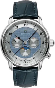 Męski zegarek Zeppelin 8536-3 to zegarek, który dzięki swemu wzornictwu zawsze będzie prezentował się dobrze. Niestereotypowy wygląd czasomierza osiągnięto również dzięki tarczy w kolorze niebieskim. Pokazana metodą analogową aktualna godzina jest czytelna i szybka do odczytania. Koperta została ozdobiona kolorem srebrnym szeroka jest na 40 mm - w kształcie okrągłym. Zeppelin to firma wytwarzająca zegarki z niemiecką jakością "Made in Germany" a także bezkompromisową precyzją wykonania.