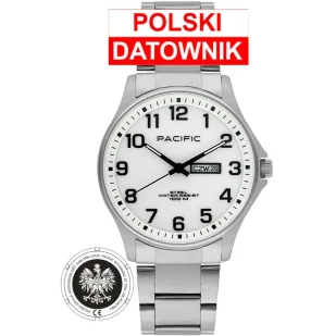 Pacific Polska SMB-1073D-01 srebrny zegarek z orłem i polskim datownikiem