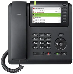 711, G. 722, G. 729ab Zestaw głośnomówiący Tak Usługi połączeń Poczta głosowa, identyfikator dzwoniącego, połączenia oczekujące, przekazywanie połączeń, zawieszanie połączeń Wyświetlacz Kolorowy wyświetlacz LCD - Tak Liczba połączeń sieciowych Połączenia sieciowe 1 x Ethernet 10Base-T/100Base-TX/1000Base-T Kolor obudowy Czarny Objaśnienia Ogólne Typ produktu Telefon VoIP Kompatybilne platformy OpenScape Voice Zintegrowane komponenty Interfejs Bluetooth Kolor obudowy Czarny Funkcje telefonu Przygotowany interfejs bezprzewodowy Bluetooth / NFC Usługi połączeń Poczta głosowa, Identyfikacja abonenta wywołującego, połączenia oczekujące, przekierowanie połączeń, wstrzymanie wybierania numeru Telefon Obsługa konferencji Trójstronny zestaw głośnomówiący Tak Regulacja głośności Tak Telefonia IP Główne funkcje Zintegrowany przełącznik Ethernet VoIP Tak Protokoły VoIP SIP Kodeki głosowe G. 711, G. 722, G. 729ab Jakość usług IEEE 802. 1Q (VLAN), Usługi zróżnicowane (DiffServ) Bezpieczeństwo IEEE 802. 1X, TLS Obsługa Power Over Ethernet (PoE) Tak Protokoły sieciowe HTTPS, SRTP Liczba połączeń sieciowych Połączenia sieciowe 1 x Ethernet 10Base-T/100Base-TX/1000Base-T Funkcje głosowe Adaptacyjny bufor jittera (AJB) Funkcje sieciowe PoE klasy 2, protokół Lightweight Directory Access Protocol (LDAP) Pamięć telefonu Pojemność książki telefonicznej 1000 nazw i numerów Typ wyświetlacza Kolorowy wyświetlacz LCD Lokalizacja wyświetlacza Telefon Przekątna 10,9 cm (4.rozdzielczość ekranu 480 x 272 pikseli Głębia kolorów 16 bit (65000 kolorów) Podświetlenie Tak Pamięć Obsługiwane karty pamięci flash Karta pamięci SD Różne złącza Elektroniczny przełącznik widełkowy (EHS) Umieszczenie/montaż Możliwy montaż na ścianie, na stole Wymiary i waga (podstawa) Szerokość 21,9 cm Głębokość 16,5 cm Wysokość 19,3 cm Waga 960 g To potężne urządzenie jest czymś więcej niż tylko telefonem: oprócz dźwięku HD i wszystkich wysokiej jakości funkcji telefonicznych, których można oczekiwać od Unify, CP600 oferuje liczne funkcje interoperacyjne, takie jak integracja rozmów obwodowych, NFC i Bluetooth 2.1 lub 4.1 LE. Dzięki temu idealnie nadaje się do współpracy w miejscu pracy. CP600 można opcjonalnie zamontować na ścianie i uzupełnić o dodatkowy moduł klucza.Unify OpenScape CP600. Typ produktu: Telefon IP, Kolor produktu: Czarny, Typ słuchawki: Słuchawka przewodowa. Kompatybilne karty pamięci: SD. Regulacja głośności: Cyfrowa. Wyświetlacz: LED, Przekątna ekranu: 10,9 cm (4,3 cala), Rozdzielczość ekranu: 480 x 272 pikseli. Kodek głosowy: G.711, G.722, G.729ab PoE klasy 2 Odchylany kolorowy wyświetlacz graficzny, 4,3" (480*272 pikseli) Podświetlenie LED (białe) Dioda sygnalizacyjna LED (czerwona/zielona/żółta) 5 kontekstowych przycisków programowych z diodą LED (czerwoną/zieloną/żółtą) 2 stałe przyciski funkcyjne (menu/poza biurem) 4-kierunkowy nawigator, plus przycisk OK 3 przyciski funkcyjne audio (wyciszenie/głośnik/zestaw słuchawkowy) z diodą LED głośność +/- otwarte słuchanie/bez użycia rąk (pełny dupleks) Interfejs zestawu słuchawkowego (DHSG/EHS) Przełącznik Ethernet 10/100/1000 Base-T IEEE 802.3az Energooszczędny Ethernet IEEE 802.3af Power over Ethernet, klasa 2 Bluetooth 2.1 BR/EDR i Bluetooth 4.1 LE (urządzenie dwumodowe) NFC, interfejs karty SD Opcjonalny moduł klawiszy 600 (maks. 4), montaż naścienny UNIFY OpenScape Desk Phone CP600. Urządzenie to zostało opracowane z myślą o wymagających użytkownikach i oferuje krystalicznie czystą jakość głosu HD, znakomity kolorowy wyświetlacz oraz szeroki zakres funkcji. Unify OpenScape Desk Phone CP600 - Telefon VoIP - z interfejsem Bluetooth - połączenia trójstronne - SIP - Czarny