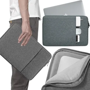 ETUI Z KIESZENIĄ POKROWIEC TORBA DO LAPTOP 15 16 MACBOOK AIR M1 M2 M3 M4 WYGODNE I LEKKIE ETUI NA LAPTOPA TORBA POKROWIEC SZARA Z KIESZENIAMI NA LAPTOP 15,6-...