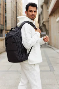 Odszyty bardzo trwale z materiałów wysokiej jakości. Posiada wiele praktycznych kieszeni w tym jedną przegrodę specjalną dedykowaną na laptopa zapinaną na rzep. Wyposażony w wygodne regulowane szelki oraz niezawodny w komunikacji miejskiej uchwyt na dłoń.