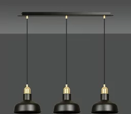 Kraj produkcji produkt polski Ilość źródeł światła 3-punktowa lampa wisząca Dostępne kolory czarna Wymiary lampy wysokość - regulowana 40-100cm, szerokość - 72cm Zasilanie 230 V - możliwość podłączenia na podwójny włącznik Klasa szczelności IP20 Żarówka LED / Energooszczędna / Zwykła / max 60W Żarówki w komplecie nie Materiał Metal malowany proszkowo i złote elementy dekoracyjne Rodzaj gwintu E27