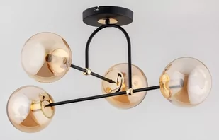 Lampa sufitowa 4 punktowa ze szklanymi kloszami w kolorze transparentnym bursztynowym. Elementy metalowe wykończone w kolorze czarnym i złotym.
