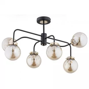 Nowoczesna lampa sufitowa 6 punktowa ze szklanymi kloszami. Elementy metalowe lampy wykończone kolorze czarnym ze złotymi wstawkami. Możliwość podłączenia lampy tak, aby świeciły trzy żarówki lub trzy pozostałe lub wszystkie (pod warunkiem, że instalacja w pomieszczeniu jest rozdzielona na 2 obwody). Idealnie pasuje do nowoczesnych i loftowych wnętrz.