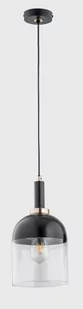 Lampa wisząca 1 punktowa ze szklanym przezroczystym kloszem (w 1/3 od góry w kolorze czarnym). Elementy metalowe lampy wykończone w kolorze czarnym i złotym. Możliwość skrócenia wysokości lampy.