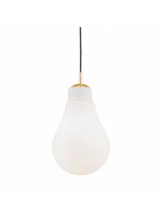 Lampa żarówka, żarówka w lampie - incepcja! Szklana designerska, a zarazem dość prosta lampa w kształcie gruszki ze złotymi akcentami. Pojedyncza lampa wisząca ze szklanym kloszem i złotymi detalami - taka jest lampa JESSE.