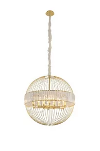 Producent: Auhilon Materiał: metal, kryształ Wymiary: wysokość 195cm, średnica 78cm Kolor oprawy: złoty Źródło światła: 12 x E14 Stopień odporności na wnikanie ciał stałych i wilgoci IP: