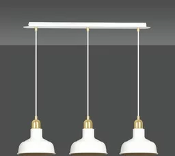 Kraj produkcji produkt polski Ilość źródeł światła 3-punktowa lampa wisząca Dostępne kolory biały Wymiary lampy wysokość - regulowana 40-100cm, szerokość - 72cm Zasilanie 230 V - możliwość podłączenia na podwójny włącznik Klasa szczelności IP20 Żarówka LED / Energooszczędna / Zwykła / max 60W Żarówki w komplecie nie Materiał Metal malowany proszkowo i złote elementy dekoracyjne Rodzaj gwintu E27