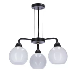Lampa wisząca 3 punktowa ze szklanymi białymi kloszami. Elementy metalowe lampy wykończone w kolorze czarnym. Możliwość regulacji wysokości.