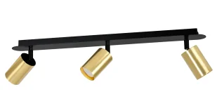 wysokiej jakości metal malowany proszkowo Kolor: czarno-złoty Źródło światła: GU10, 3x30W Wymiary: szerokość - 74 cm, wysokość - 18 cm Źródło światła w komplecie: nie Zobacz także inne lampy sufitowe z naszej oferty klikając w powyższy link.