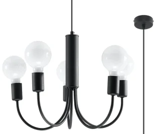 Styl: nowoczesny, industrialny, loft Materiał: wysokiej jakości stal Kolor: czarny Źródło światła: E27, 5x60W, 50Hz, 230V, IP20 Wymiary: 46 x 46 x 120 cm Żarówki w komplecie: