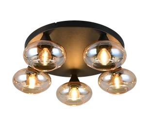 DIVINA R66645013 lampa sufitowa czarna z kloszami ze szkła bursztynowego 5xE14