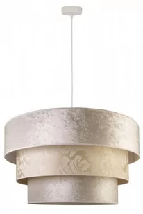 Lampa wisząca 1 punktowa z materiałowymi abażurami z barokowym wzorem w kolorze ecru wykonanymi z weluru i poliestru. Oprawa lampy wykończona w kolorze białym. Możliwość regulowania wysokości.