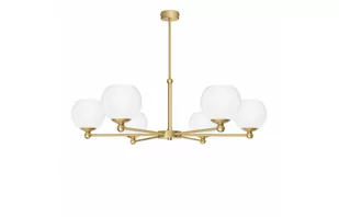 Duży złoty żyrandol wykonany z mosiądzu z sześcioma kulami w połysku.