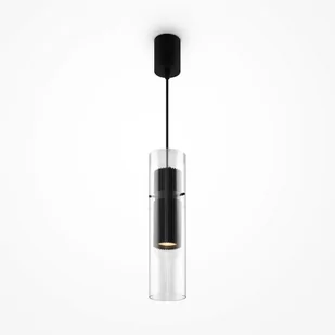 Lampa wisząca 1 punktowa z metalową tubą osłoniętą przeźroczystym, szklanym kloszem. Oprawa wykończona w kolorze czarnym matowym. Możliwość regulowania wysokości.