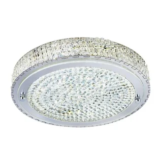 Lampa sufitowa 1 punktowa z wbudowanym źródłem światła LED. Polerowany chromowany pierścień wykończeniowy wokół zewnętrznej części klosza obejmuje mnóstwo skomplikowanych kryształowych dekoracji pośrodku. Zlicowana oprawa jest oświetlona najnowszą energooszczędną technologią LED, a światło odbija się od przezroczystych kryształowych kulek, dzięki czemu cały element pięknie mieni się po włączeniu.