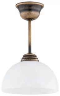 Klasyczna lampa wisząca 1 punktowa wykończona w patynie. Lampa posiada szklany klosz w kolorze biały alabaster.