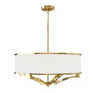 Lampa wisząca 4 płomienna z dużym delikatnie kremowym abażurem. Elementy metalowe wykończone w kolorze złotym. Możliwość skrócenia wysokości lampy poprzez wykręcenie jednej lub dwóch rurek, odpowiednio o 20 cm lub o 40 cm lub o 60 cm.
