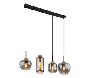 Lampa wisząca MATT łączy w sobie nowoczesny design z nutą vintage i wprowadza stylowe akcenty do Twojego domu. Prostokątny korpus wykonany z matowego, czarnego metalu nadaje lampie ponadczasowej elegancji, która doskonale komponuje się z różnymi stylami wnętrz. Szczególnie efektowne są cztery różne szklane klosze w kolorze dymu, które są elegancko podkreślone przez sznur konopny w naturalnym kolorze. To niezwykłe połączenie zapewnia harmonijną grę materiałów i kolorów oraz tworzy przytulny i nastrojowy efekt świetlny. Lampa wisząca MATT o długości 960 mm i szerokości 230 mm idealnie sprawdzi się nad stołem w jadalni i salonie lub w przestronnych korytarzach.