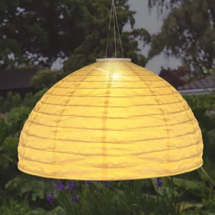 Solarna lampa wisząca LED 33982 z szerokim kloszem Ta solarna lampa z szerokim kloszem jest przeznaczona do zawieszenia. W szerokim, naturalnie białym kloszu zainstalowano wyjątkowo ciepłe diody LED, które zapewniają przytulne oświetlenie po zapadnięciu zmroku.