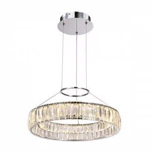 Producent: Italux Seria: Maxis Materiał wykonania: stal, kryształ Wymiary: wysokość 75cm, średnica 45cm Kolor wykończenia: chrom Rodzaj źródła światła: