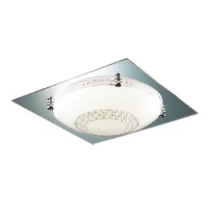 Plafon z wbudowanym źródłem światła LED, ze szklanym przezroczysto-matowym kloszem przyozdobiony dodatkowo kryształkami. Elementy metalowe wykończone w chromie.