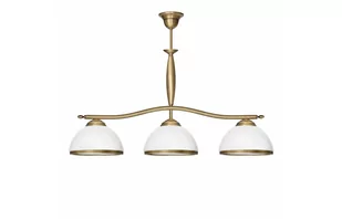 Żyrandol mosiężny nad stół z trzema kloszami w linii.