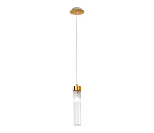 Ręcznie robiony żyrandol na lince. Piękny projekt Manuela Viviana. Wykonany jest z metalowej podstawy i korpusu z ramionami pokrytymi 24-karatowym złotem, z przezroczystym, rowkowanym cylindrycznym kielichem szklanym. Idealne oświetlenie salonu, jadalni, sypialni, hotelu czy restauracji.