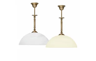 Lampa mosiężna z jednym dużym kloszem.