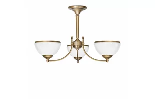 Żyrandol mosiężny z trzema kloszami.