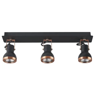 Metalowe lampy punktowe na prostokątnej ramie. Powieś tę lampę sufitową w salonie czy sypialni by oświetlić przestrzeń codzienną, lub skorzystaj z ruchomych kinkietów i nakieruj je na wybrane przez siebie elementy pokoju, by przyciągnąć do nich uwagę domowników. Produkt wykonany jest z wysokiej jakości metalu, dzięki czemu nie wymaga on częstej pielęgnacji. Połączenie czarnego koloru z miedzianymi elementami sprawia, że lampa świetnie prezentuje się w pomieszczeniach w stylu nowoczesnym czy industrialnym. Szczegóły: Typ produktu: