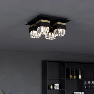 EGLO lampa sufitowa Barrancas, 4-punktowa kryształowa lampka, szlachetne oświetlenie z metalu w kolorze czarnym i złotym, szkło w kolorze przezroczystym, lampa do salonu, oprawka E14