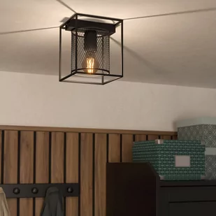 EGLO lampa sufitowa Catterick, kwadratowa lampka do salonu w stylu industrialnym, oświetlenie z siatki metalowej w kolorze czarnym, oprawka E27