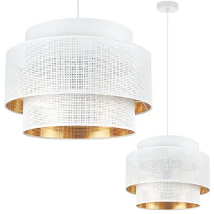 Zmień swoje wnętrze z naszą elegancką lampą sufitową Asti Trio, która wprowadzi odrobinę luksusu do każdego pomieszczenia. Ta wisząca lampa, stworzona w Polsce, odznacza się wyrafinowanym stylem glamour, ze złotym wykończeniem abażura, który idealnie współgra z dominującym białym kolorem. Wykonana z wysokiej jakości tkaniny, lampa posiada okrągły abażur o średnicy 45 cm i wysokości 27 cm, co zapewnia elegancki wygląd. Konstrukcja lampy z tworzywa sztucznego w białym i złotym kolorze dodaje subtelności i nowoczesności. Lampa jest wyposażona w jedno źródło światła na żarówkę E27 (brak w zestawie) o maksymalnej mocy 60W, działającą na standardowym napięciu sieciowym 230V.
