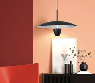 Lampa wisząca ze zintegrowanym źródłem światła LED CCT, które umożliwia wybór preferowanej barwy światła - ciepłej, zimnej lub neutralnej. Preferowaną barwę światła ustawia się przed montażem, w podsufitce lampy. Elementy metalowe wykończone w kolorze czarnym. Możliwość regulowania wysokości.
