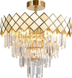 Parametry Wymiary (W. x Sz. x Gł.): 53 x 50 x 50 Kolor: Złoty Materiał: Metal, Kryształ Ilość źródeł światła: 9 szt. Gwint: E14 Moc: 40W