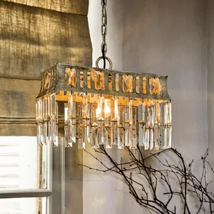 Ta wspaniała lampa wisząca ma zadatki na stałego bywalca eleganckich wnętrz. Dzięki wysokiej jakości materiałom i wykonaniu lśni urokiem minionych czasów. Wyjątkowy blask roztacza dzięki misternie szlifowanym szklanym kryształom, które pod wpływem światła wyczarowują fascynujące refleksy. O estetyczny splendor dba żelazna rama z ornamentami i antycznym wykończeniem. Odkryj tę niesamowitą perełkę i wprowadź jej ponadczasowy urok również do swojego domu.