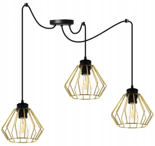 Lampa Wisząca Potrójna Sufitowa Żyrandol Pająk Złota Plafon Druciak