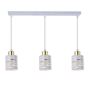 Klosze o wymiarach Ø90 x 100 mm harmonijnie współgrają z podłużną podstawą 500 x 50 x 20 mm, która zapewnia stabilny montaż oraz nowoczesny, geometryczny wygląd. Biało–złota kolorystyka nadaje lampie elegancji i wizualnej lekkości, dzięki czemu idealnie sprawdzi się w aranżacjach nowoczesnych, skandynawskich, glamour i minimalistycznych.