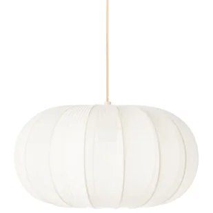 Lampa wisząca z nylonowym kloszem. Wprowadź delikatny i naturalny akcent do swojej jadalni lub salonu dzięki tej eleganckiej lampie wiszącej. Teksturowany abażur z nylonu z subtelnymi plisami łączy lekkość i trwałość, jednocześnie delikatnie rozpraszając światło, tworząc ciepłą i przytulną aurę. Zaokrąglona sylwetka lampy dodaje prostoty i nowoczesnej elegancji, idealnie pasując do minimalistycznych i współczesnych wnętrz. Szczegóły: Typ produktu: