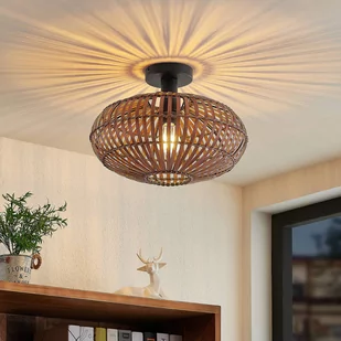 Lindby Majeora wzbogaca pomieszczenie o powiew świeżego powietrza z natury. Charakterystyczny bambusowy klosz lampy przyciąga wzrok misternym plecionym wzorem charakteryzującym się prostymi, ale wyrazistymi detalami. Piękny, wszechstronny design pasuje zarówno do wnętrz w stylu skandynawskim, jak i inspirowanym stylem bohemy, gdzie jego naturalny blask tworzy przytulną i relaksującą atmosferę, która zachęca do miłego spędzania czasu. Źródło światła jest widoczne za bambusowymi tyczkami, ale jednocześnie wystarczająco osłonięte, by nie oślepiać po włączeniu. Po włączeniu światła, pleciony klosz tworzy piękny, regularny wzór akcentów świetlnych wzdłuż ścian ze wszystkich stron lampy.