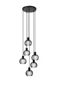 Lampa wisząca 6 punktowa z metalowymi drucianymi kloszami. Całość lampy wykończona w kolorze czarnym. Możliwość regulacji wysokości.