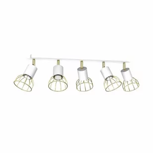 Milagro Dante MLP7253 plafon lampa sufitowa 5x40W GU10 biały/złoty. Możliwość stosowania żarówek LED (brak źródła światła w zestawie). Produkt fabrycznie nowy, zapakowany w oryginalne opakowanie producenta objęty 2 letnią gwarancją. Kolekcja lamp DANTE GOLD - minimalizm z loftowym sznytemNowoczesna, minimalistyczna kolekcja lamp DANTE GOLD to ukłon w stronę miłośników loftowych przestrzeni i dekoracji o prostym, ale intrygującym designie. W skład tej rodziny produktów wchodzi pojedynczy kinkiet, dwie listwy sufitowe (z trzema i pięcioma źródłami światła, a także trzy zwisy - pojedynczy, potrójny i pięciokrotny. Wyprodukowane przez polską markę MiLAGRO lampy DANTE GOLD posiadają korpus w kształcie walca, zakończony niewielkim kloszem, wykonanym w cienkich, metalowych prętów. Dzięki temu idealnie wpisują się w klimat wnętrz industrialnych, których siłą jest ekspozycja surowych materiałów i designerskie dodatki. Ponieważ lampy występują w kilku wariantach kolorystycznych, będących zestawieniem czerni, srebra i złota, bez trudu można znaleźć propozycję idealną do swojego domu czy biura. Niewielkie kinkiety o wymiarach 10x10x16 cm świetnie sprawdzą się w przedpokoju lub na betonowej ścianie u wezgłowia łóżka. Lampy wiszące, których wysokość można regulować w zakresie od 30 d 90 centymetrów, fantastycznie doświetlą drewniany stół w jadalni lub też kuchenną wyspę z marmurowym lub granitowym blatem.Lampy z kolekcji DANTE GOLD - jakość w parze z funkcjonalnościąNowa kolekcja lamp DANTE GOLD marki MiLAGRO to propozycja dla wszystkich, którzy cenią doskonały design, ale jednocześnie duży nacisk stawiają na funkcjonalność. Produkty z tej rodziny wykonane zostały w całości w Polsce, z najwyższej jakości materiałów. Lampy przeznaczone do źródeł światła typu GU10 i zapewnią optymalny poziom jasności w każdym pomieszczeniu.