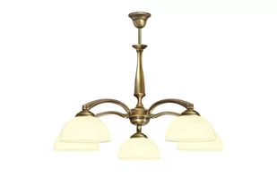 Stylowy mosiężny żyrandol pięcioramienny.